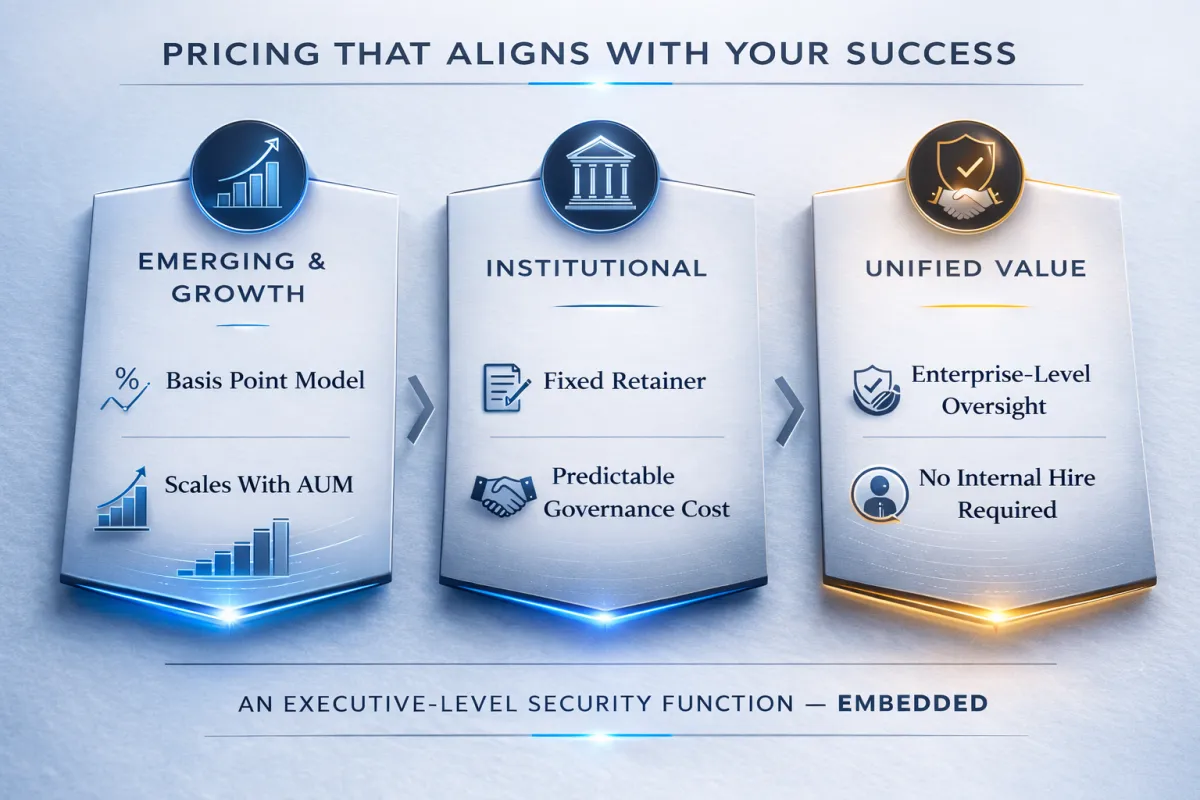 • Institutional Tiers: Predictable, fixed-retainer models for firms with $1.5B+ in AUM.